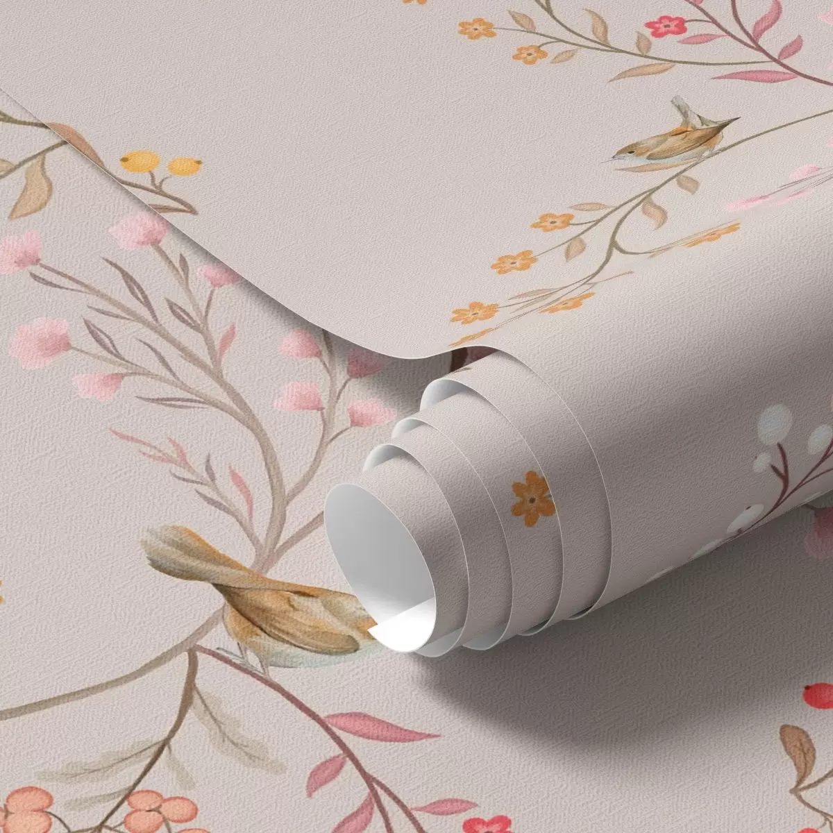 Papel pintado Flores delicadas y colibríes en las ramas a00036
