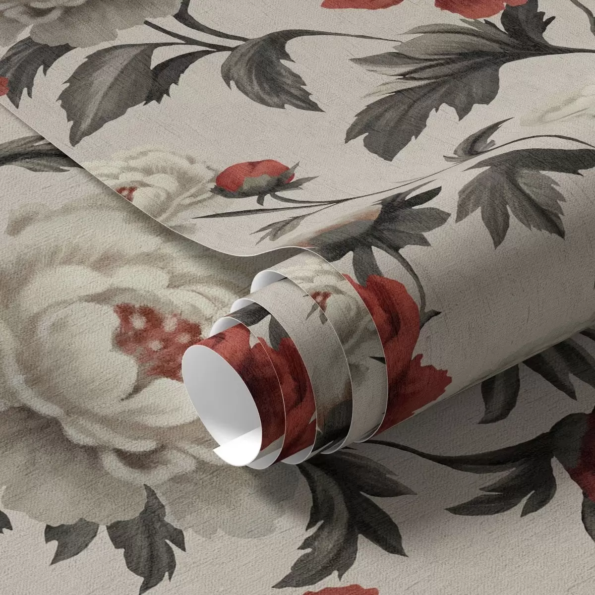 Papel pintado Peonías de estilo retro sobre fondo beige a00107