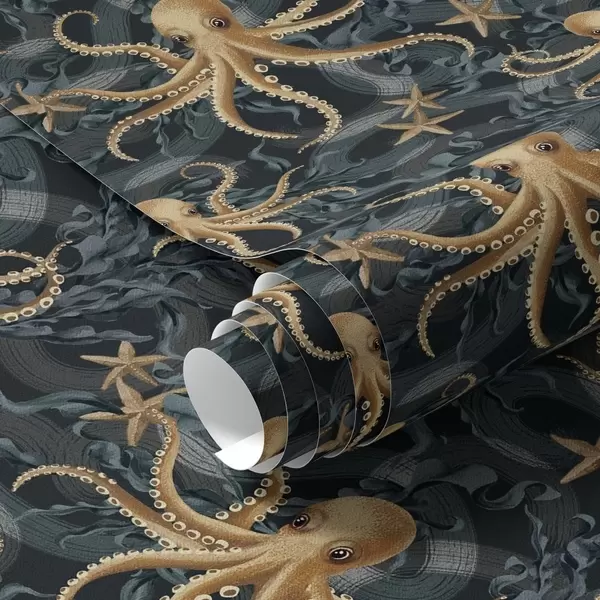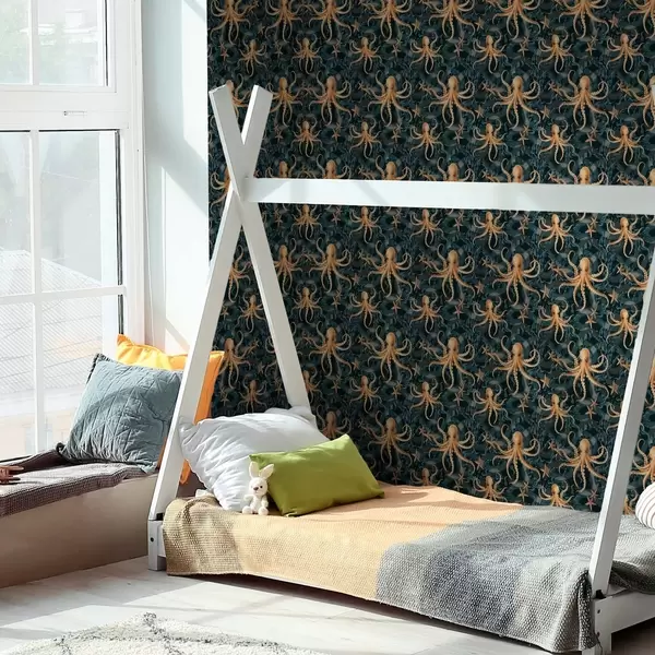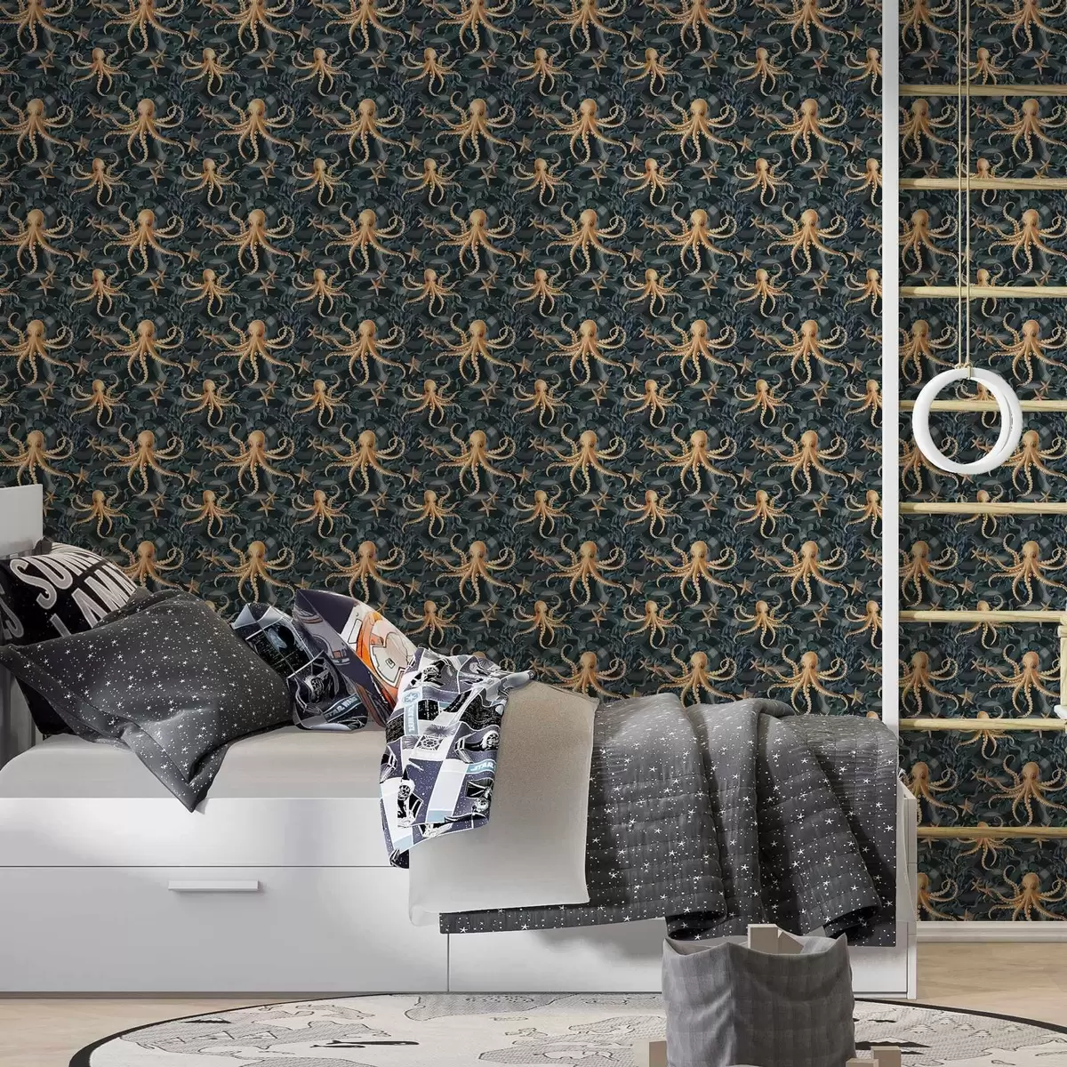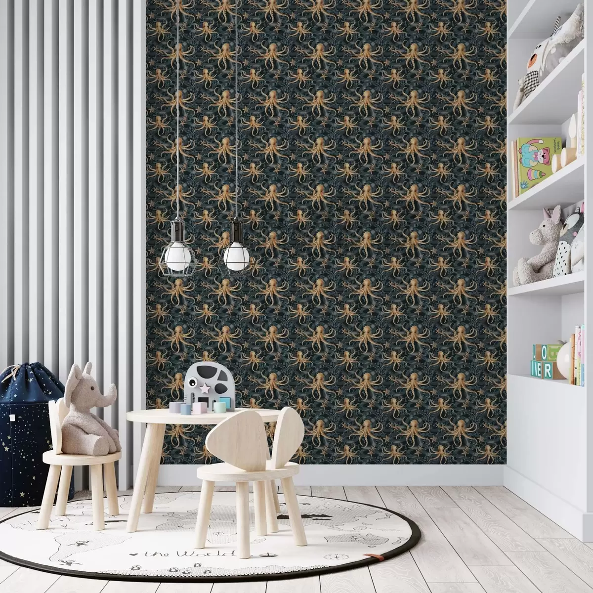 Papel pintado Pulpos sobre fondo azul oscuro a00120v1