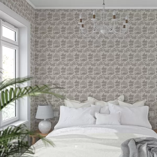 Papel pintado Castillo en el bosque en estilo gris y beige a00130