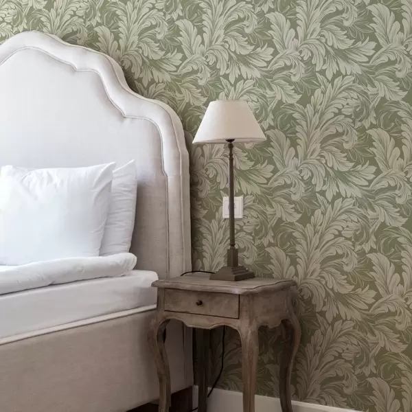 Papel pintado Barroco con hojas crema sobre fondo verde a00135