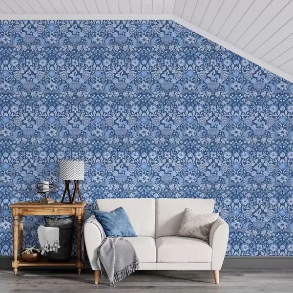 Papel pintado Estampado botánico azul de estilo vintage a00145v2
