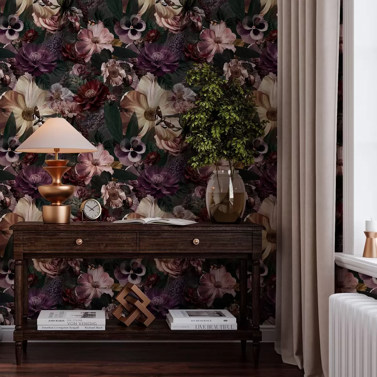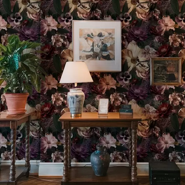 Papel pintado Estampado floral artístico en colores oscuros a00147