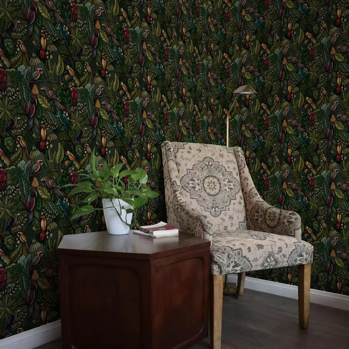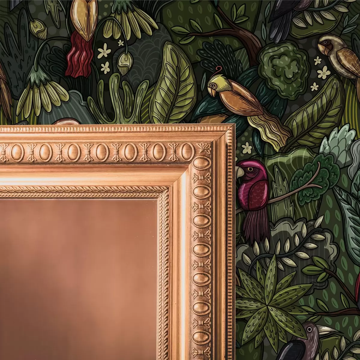 Papel pintado Aves exóticas en la selva al estilo de un grabado a00157