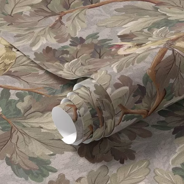 Papel pintado Pájaros sobre ramas en estilo botánico vintage a00175