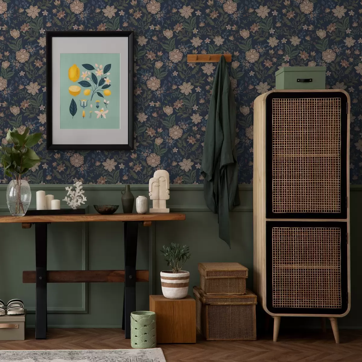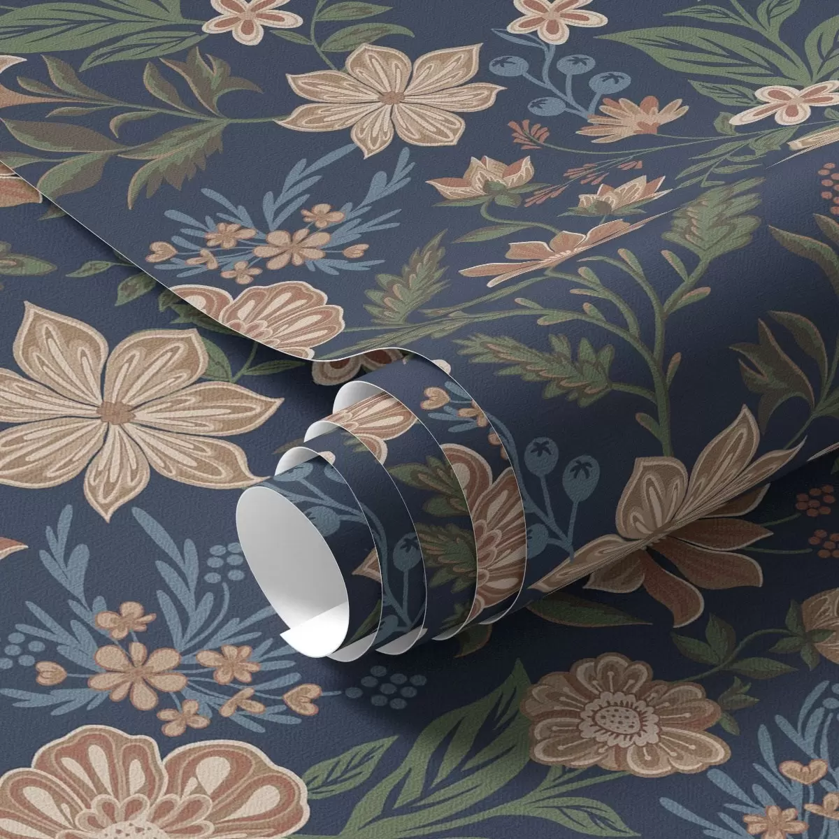 Papel pintado Motivo floral azul oscuro de estilo vintage a00183