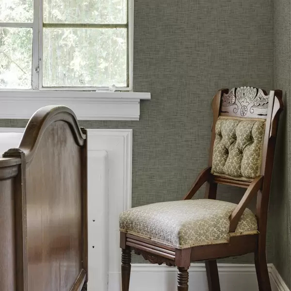 Papel pintado Textura de tejido gris verdoso, motivo de rejilla de lino a00235
