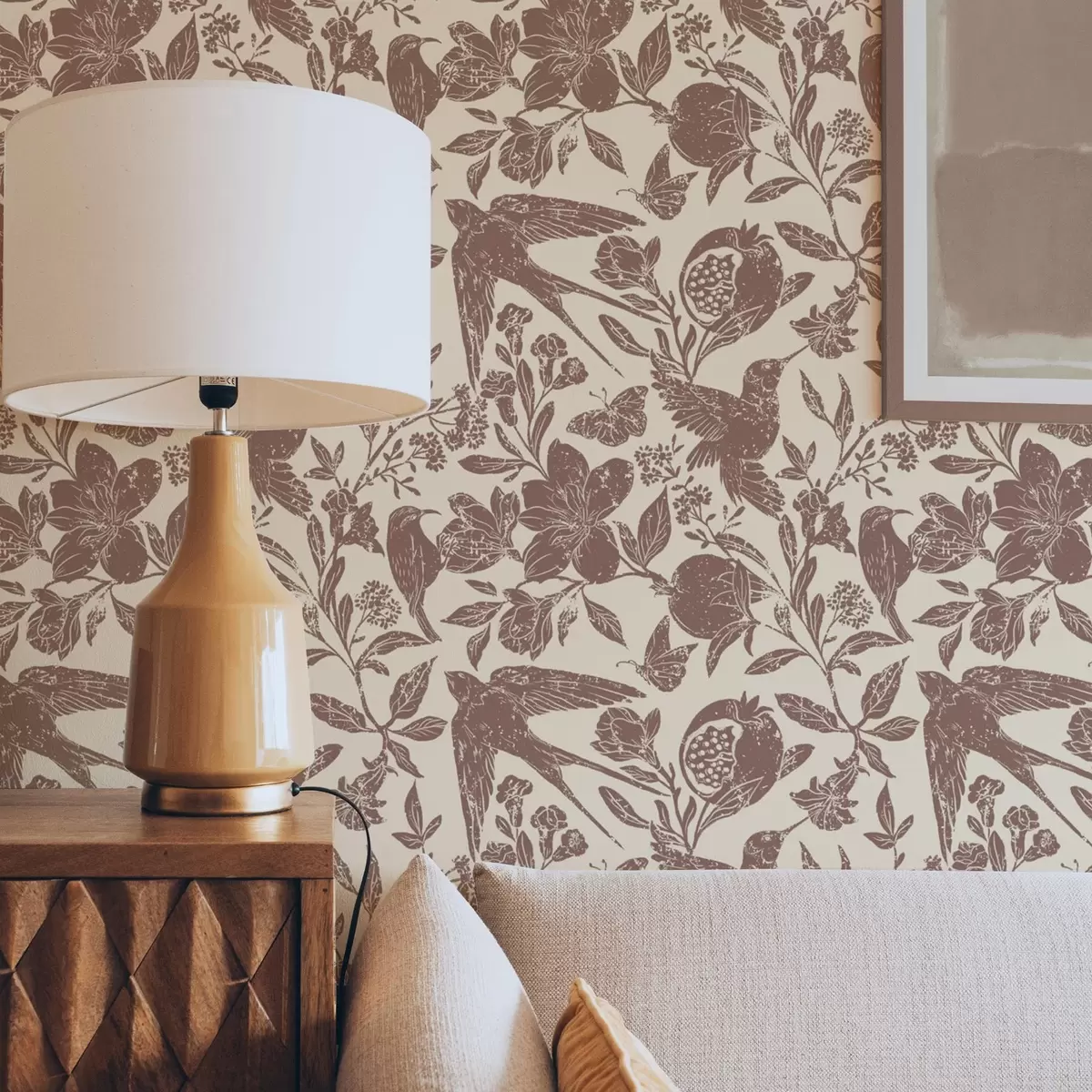 Papel pintado Pájaros, granadas y flores en estilo vintage a00263
