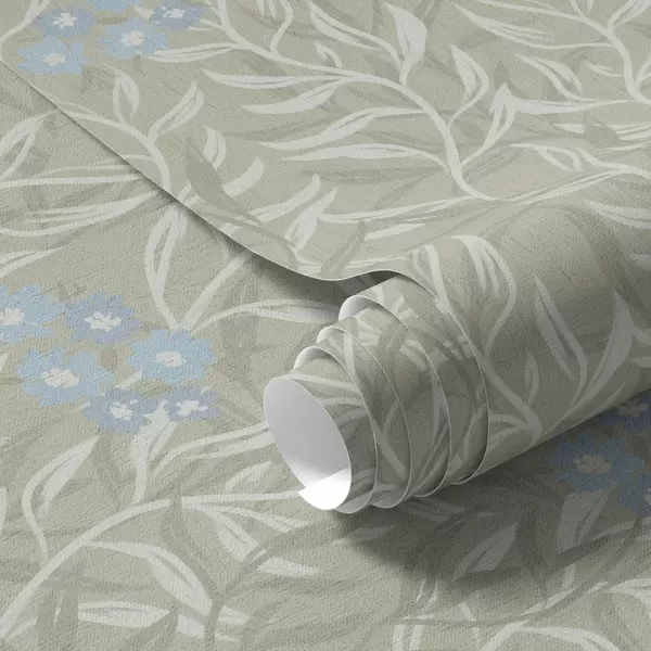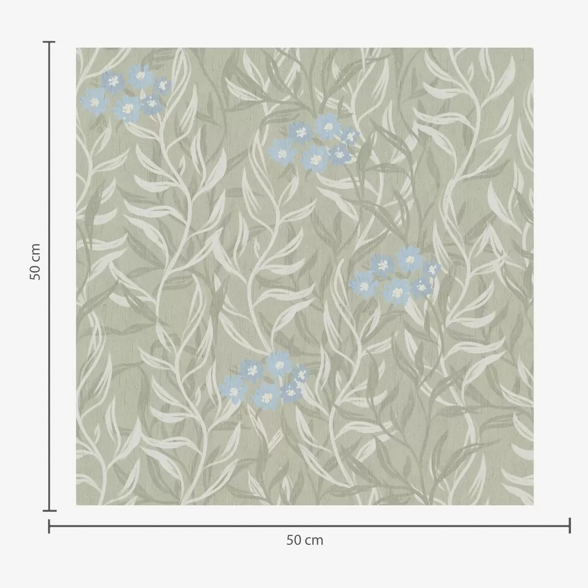 Papel pintado Fondo verde con ramas blancas y flores azules a00268v1
