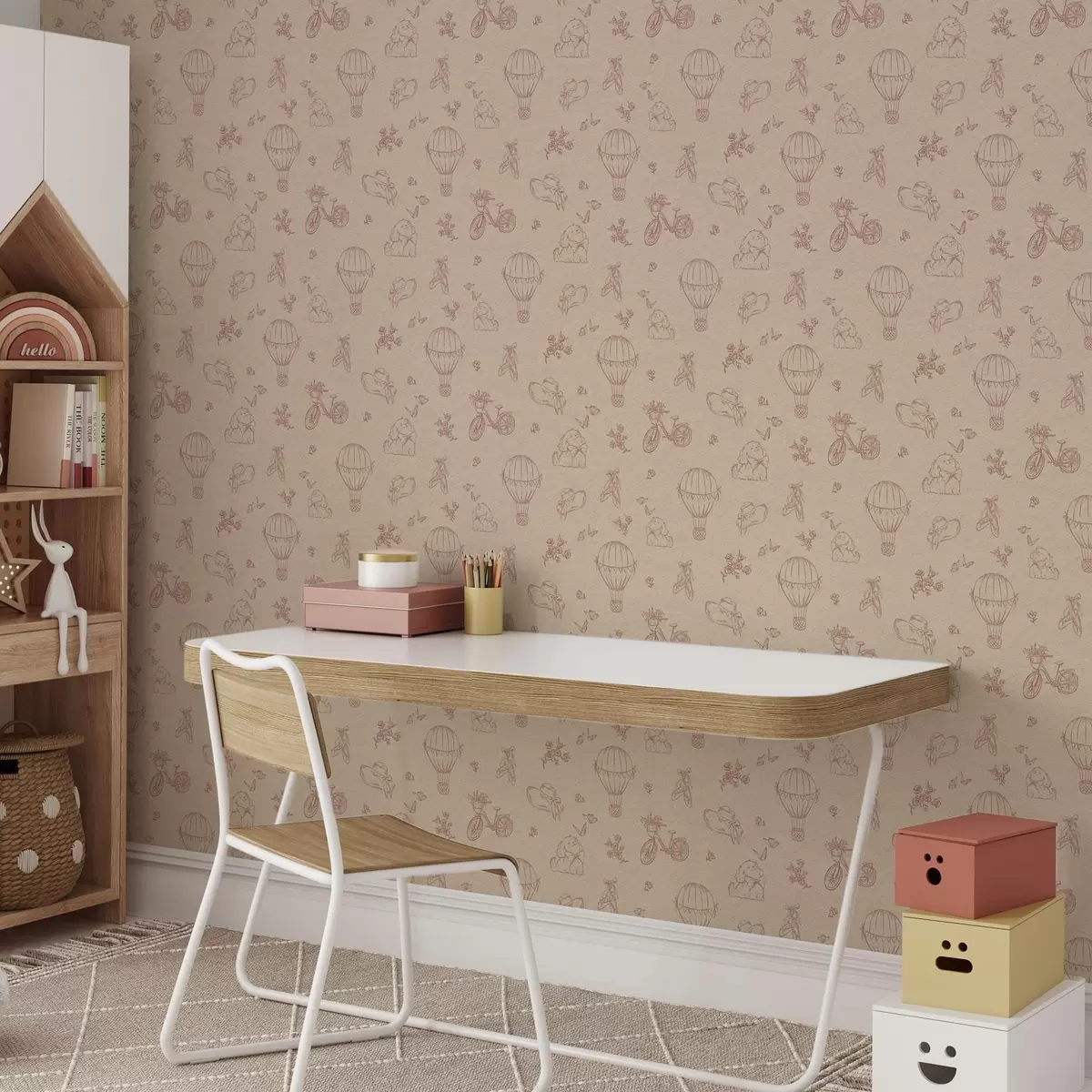 Papel pintado Motivo rosa bebé con perro, flores y aire a00279