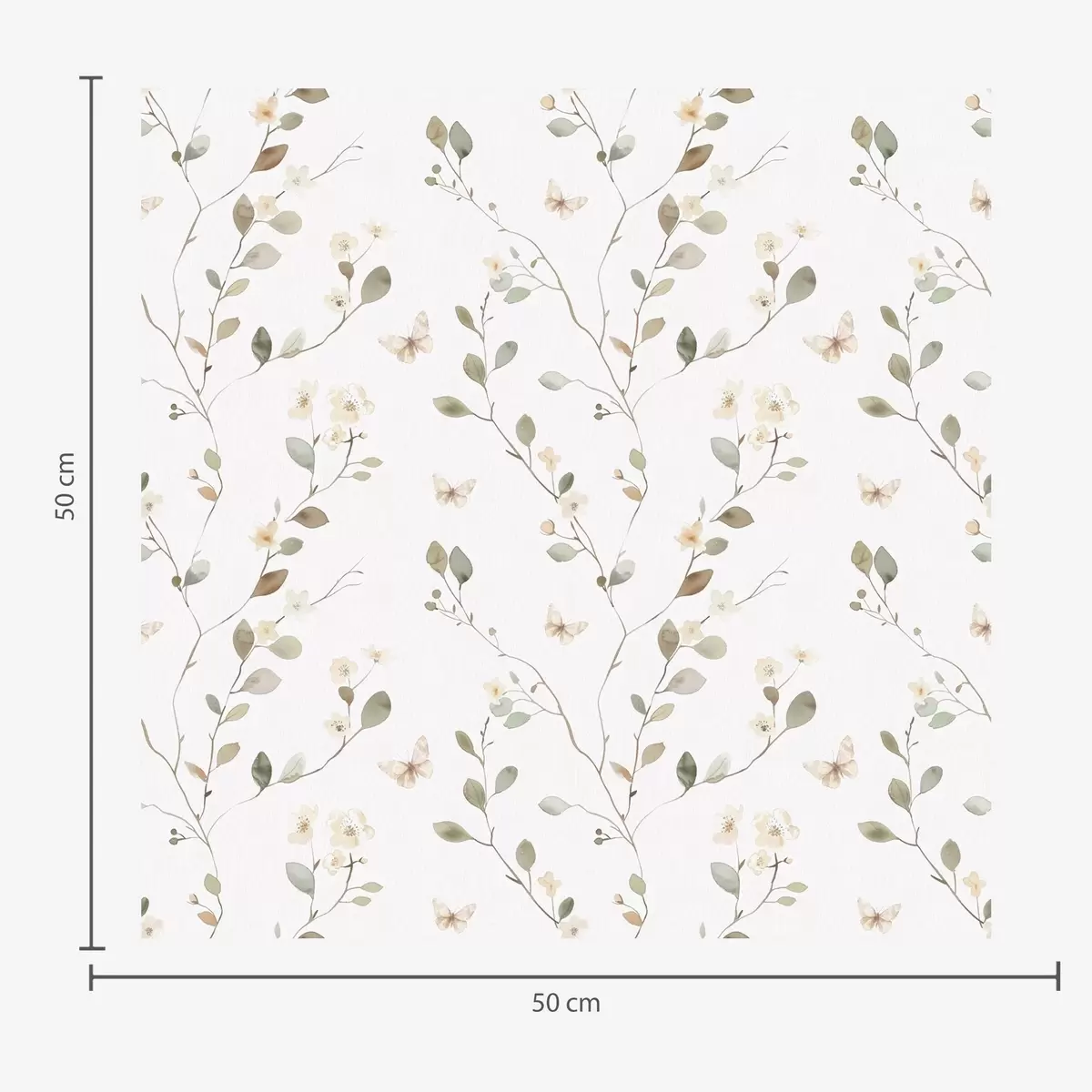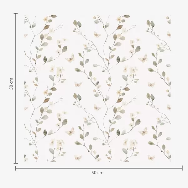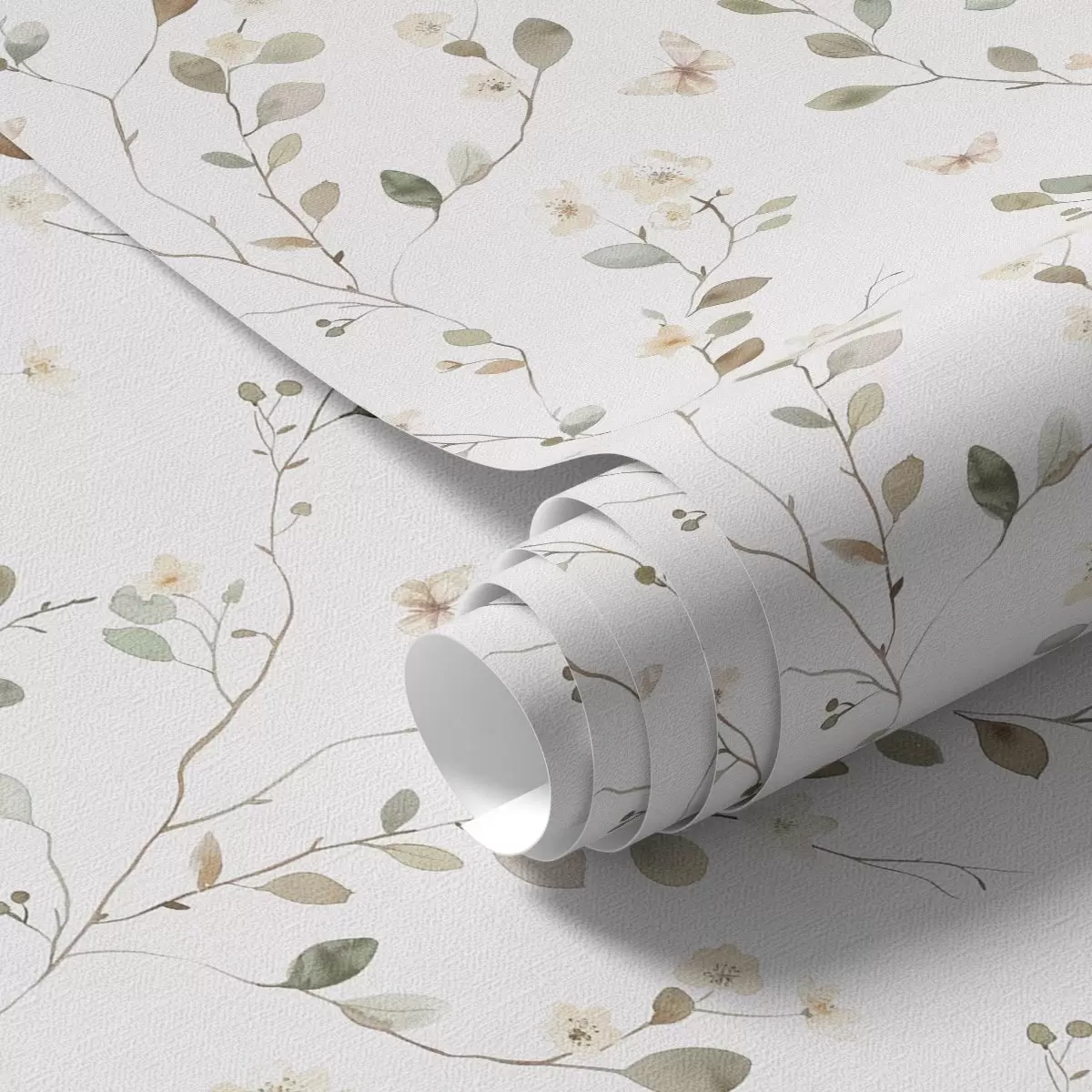 Papel pintado Ramas finas con flores y mariposas sobre fondo blanco a00342