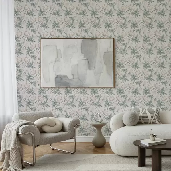 Papel pintado Exuberantes peonías en beige claro y verde beige y verde a00445