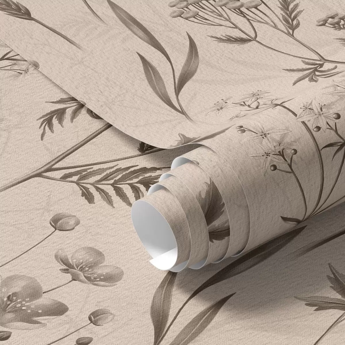 Papel pintado Flores amarillas y verdes en tonos grises-marrones a00472v1