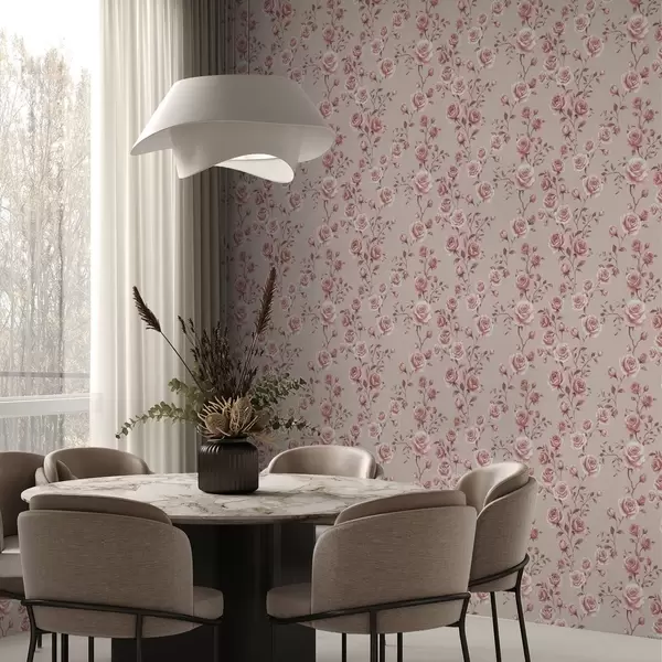 Papel pintado Rosas en polvo sobre fondo beige — estampado vintage a00497