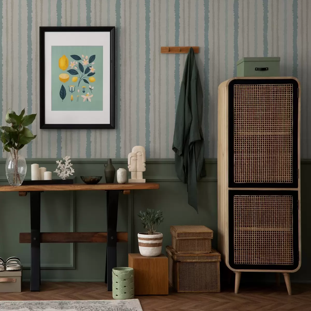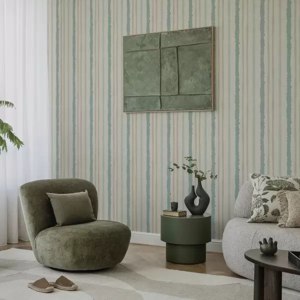 Papel pintado Rayas turquesa-beige con efecto pintado a mano a00510v1