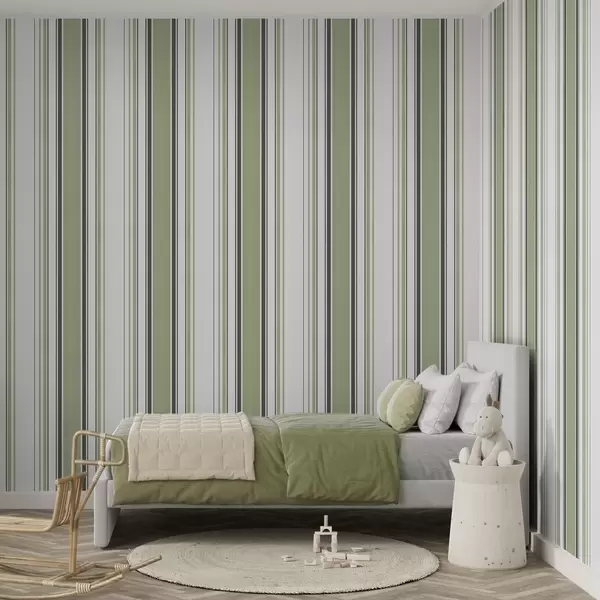 Papel pintado Fondo blanco con una mezcla de rayas verdes y negras a00520