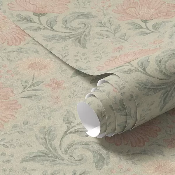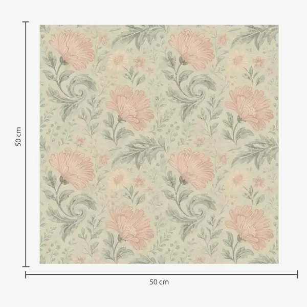 Papel pintado Flores grandes de melocotonero vintage con hojas de salvia a00580