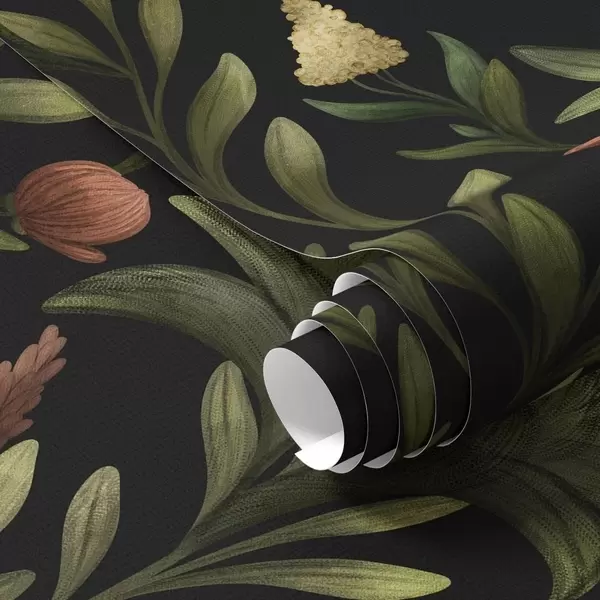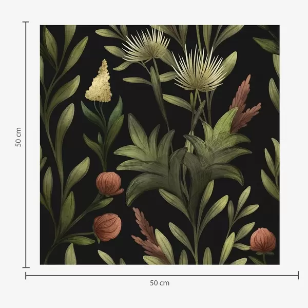 Papel pintado Hierbas altas y flores sobre fondo negro, estampado detallado a00620