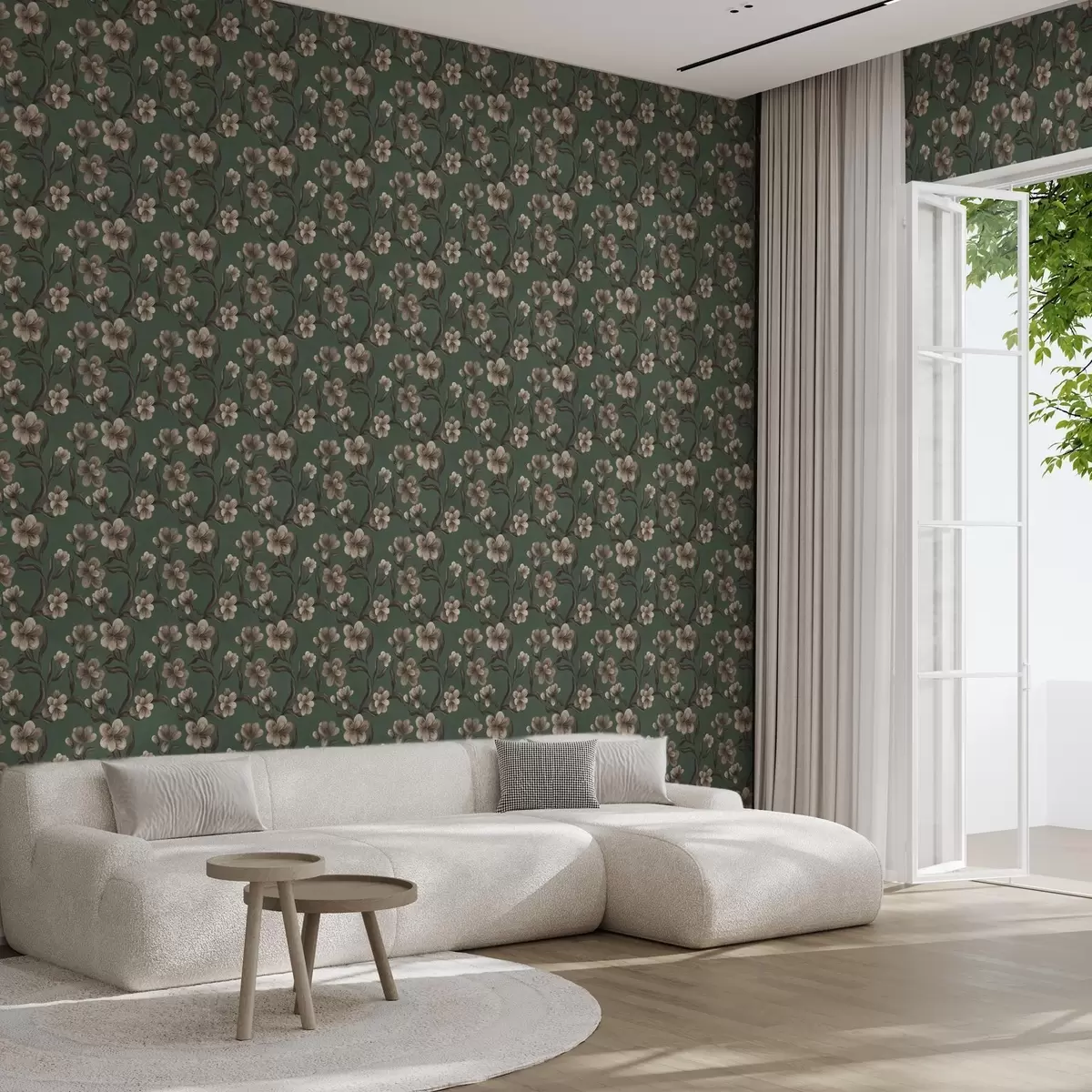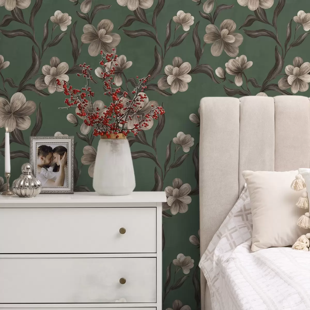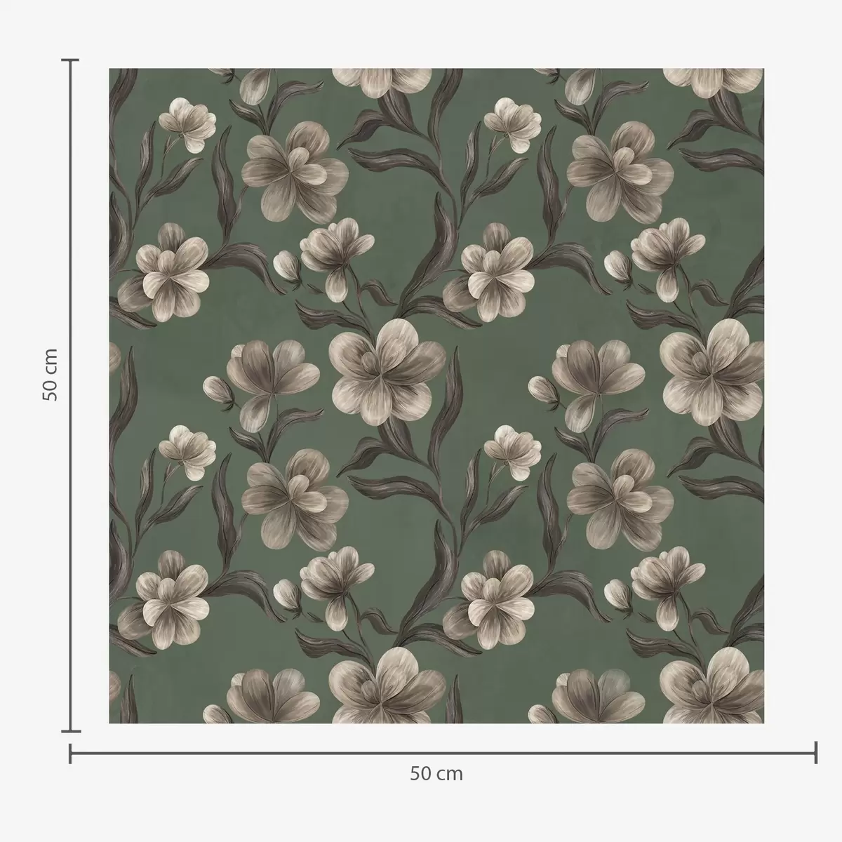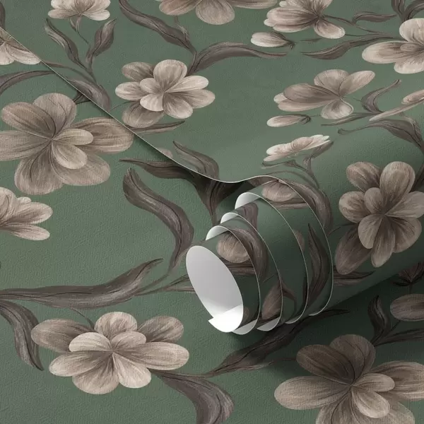 Papel pintado Flores beige sobre un fondo verde intenso a00626v3