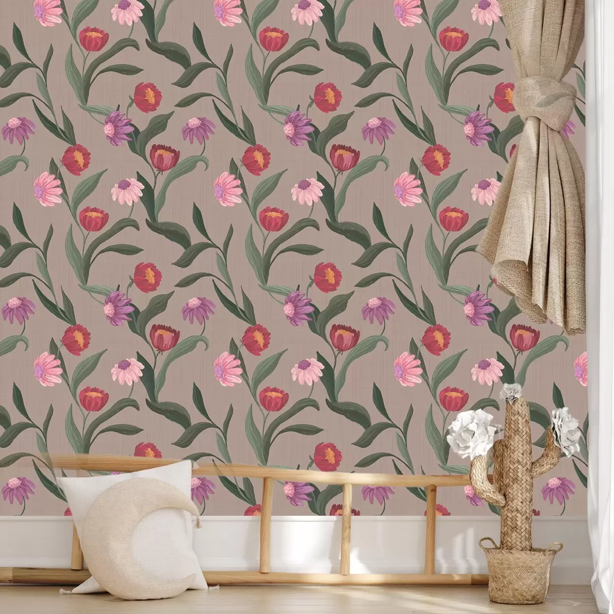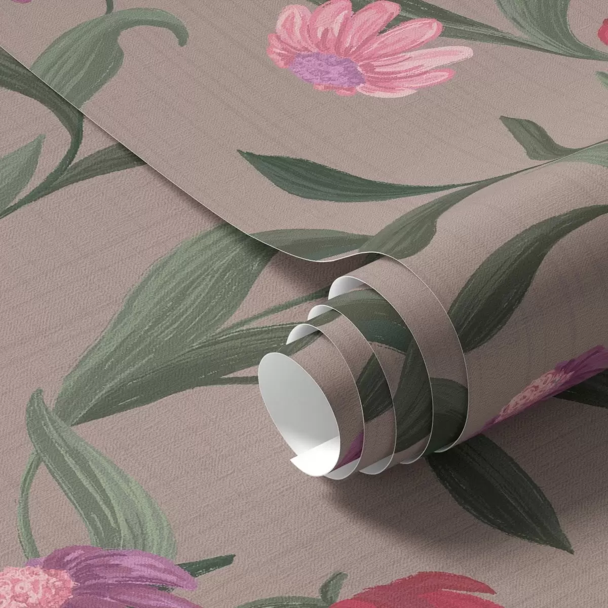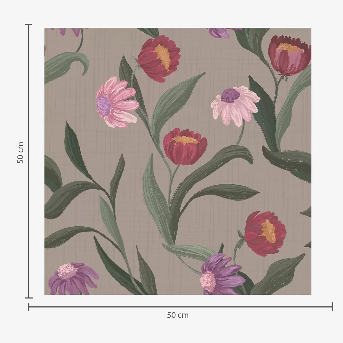 Papel pintado Flores de color rosa rojizo sobre fondo gris pardo, tallos largos a00631v2