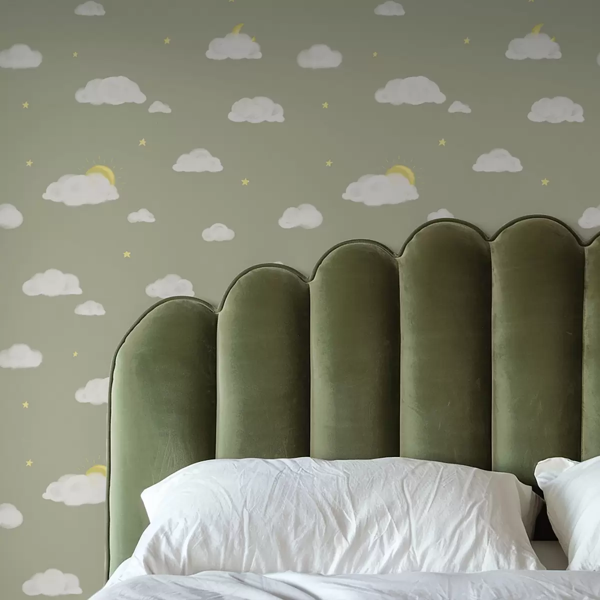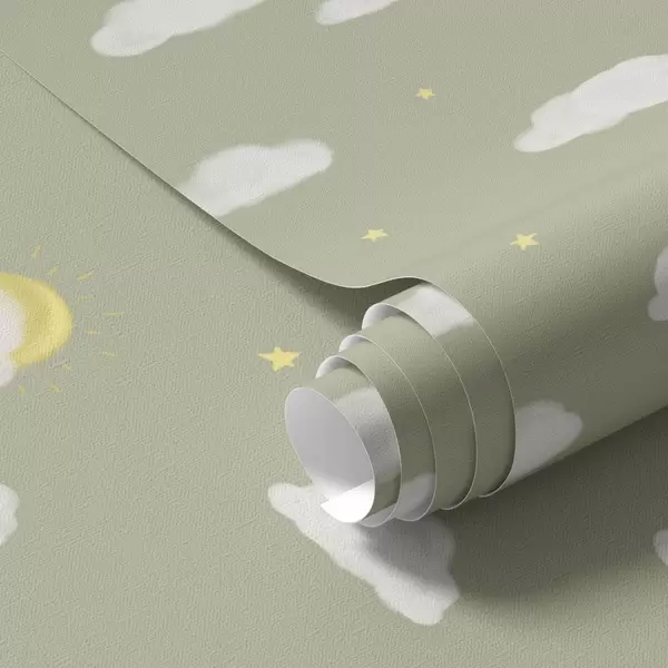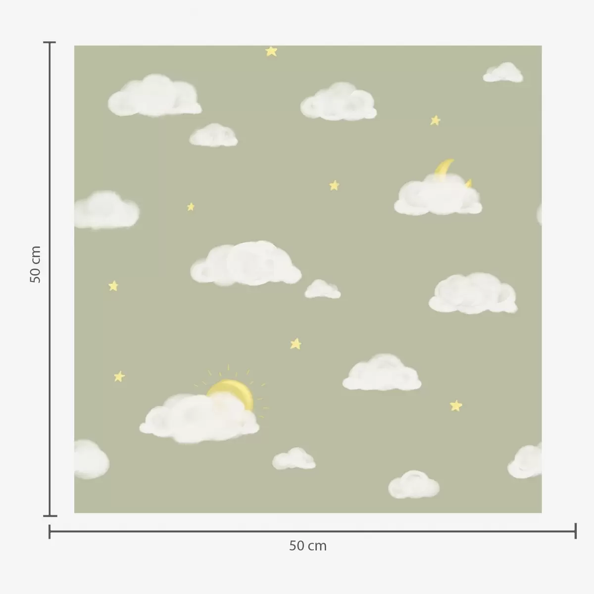 Papel pintado Nubes suaves, estrellas y sol sobre un fondo gris verdoso a00652v1