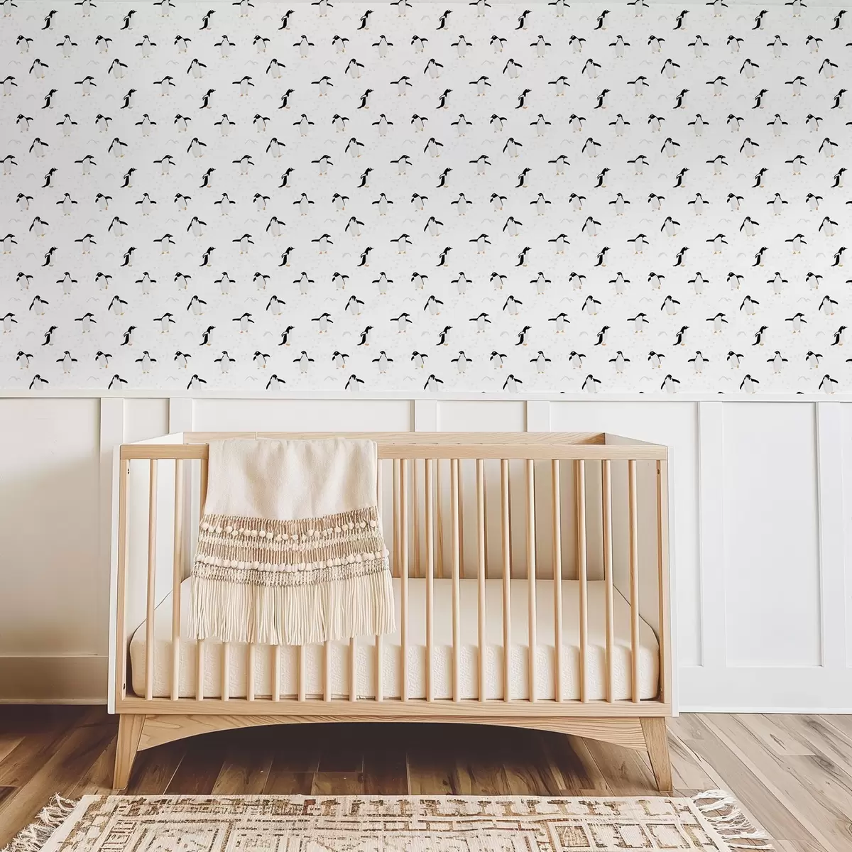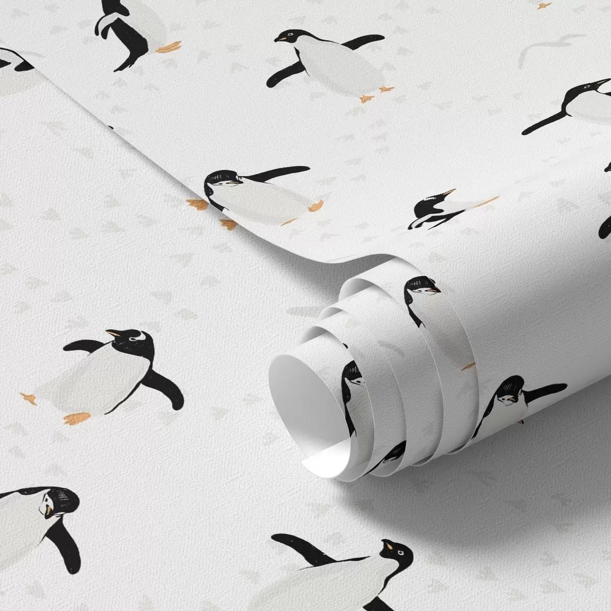 Papel pintado Pingüinos sobre fondo blanco con huellas a00655v1