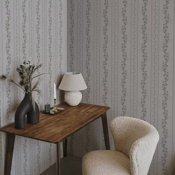 Papel pintado Delicadas rayas con flores de lavanda, estilo vintage a00671