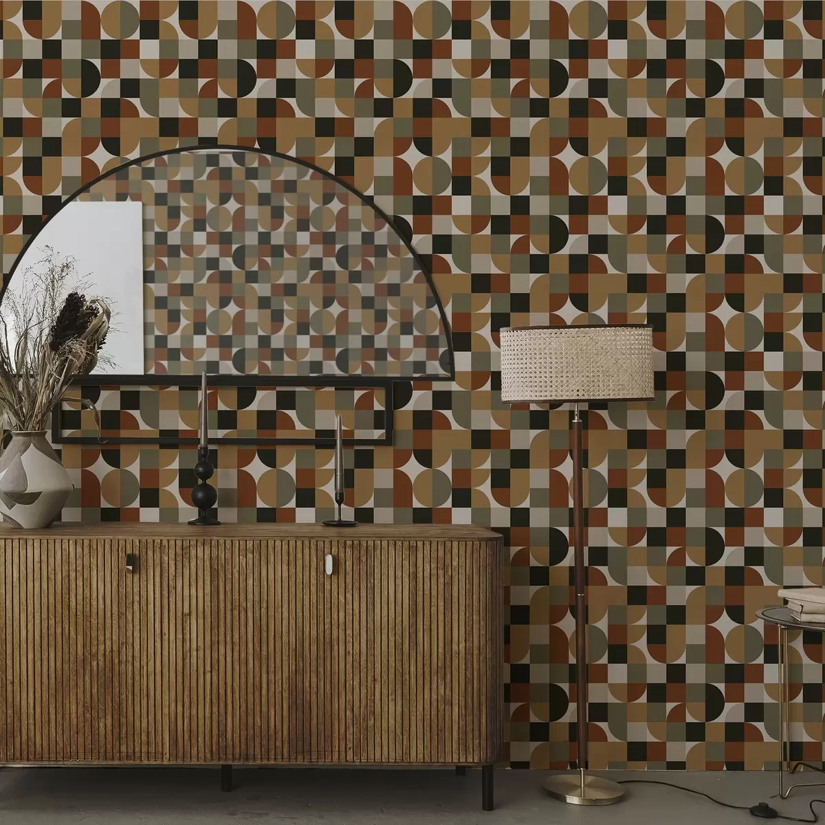Papel pintado Geometría modular en cálidos tonos tierra a00770