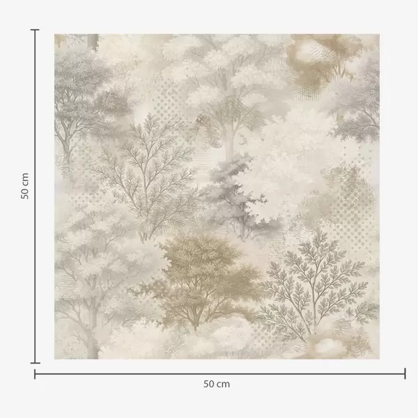 Papel pintado Bosque apacible envuelto en niebla, suaves tonos beige y grisáceos. a00785