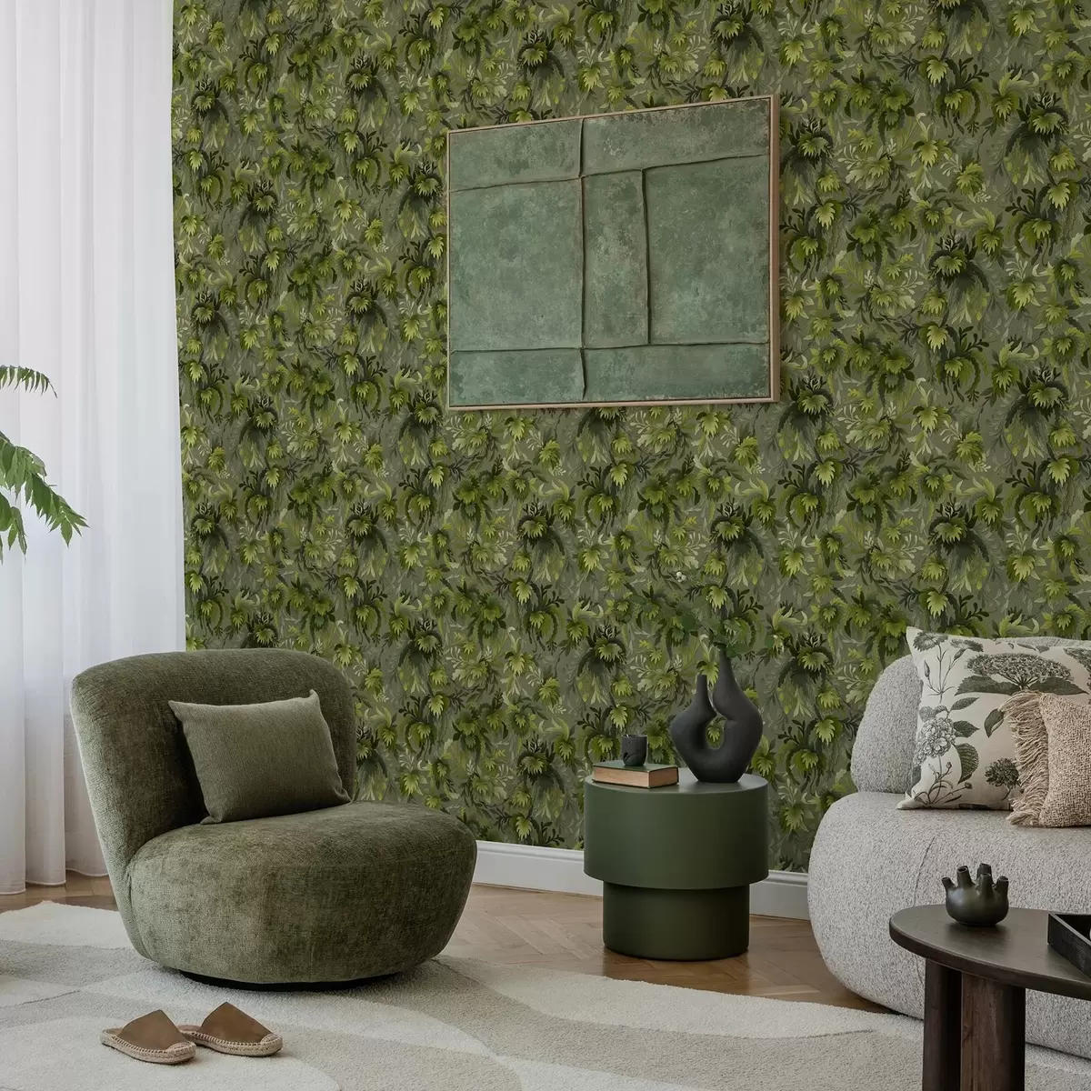 Papel pintado Denso follaje verde sobre un fondo gris verdoso a00805v1