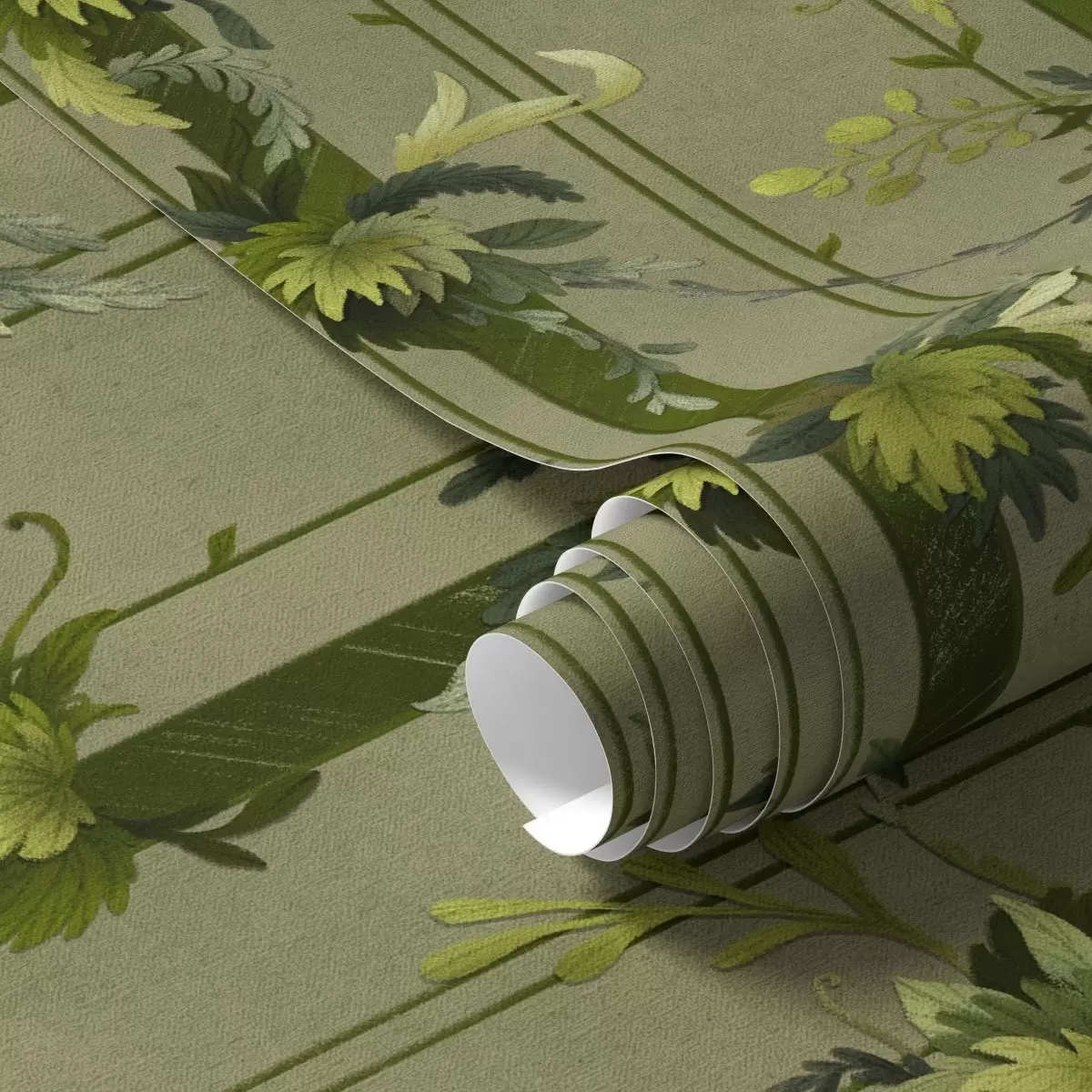 Papel pintado Hojas y racimos de vid en tonos acuarela verde claro a00807