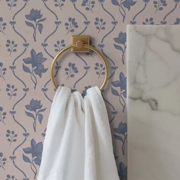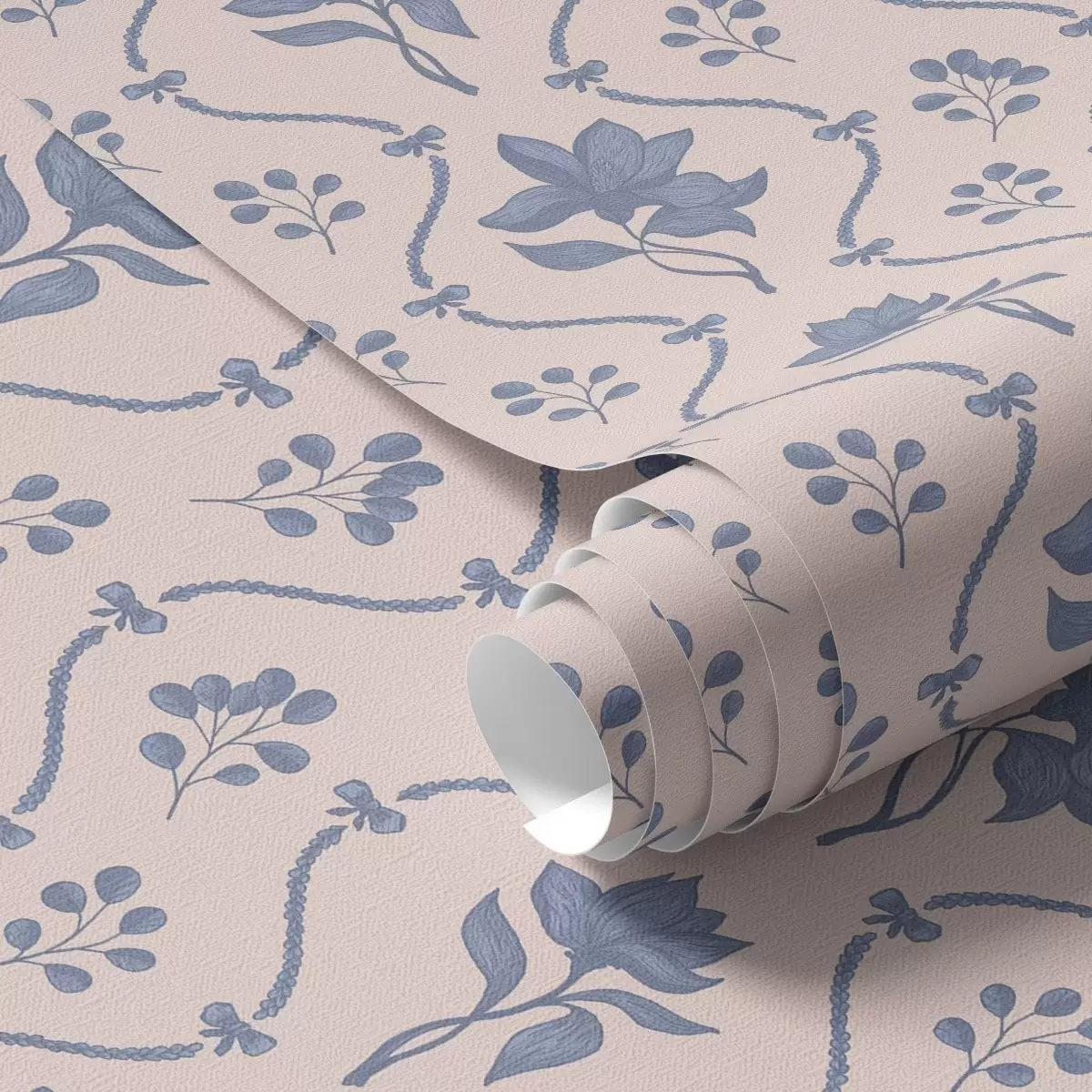 Papel pintado Pequeñas flores y cintas en tonos azules y rosas a00808v3