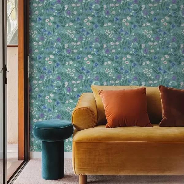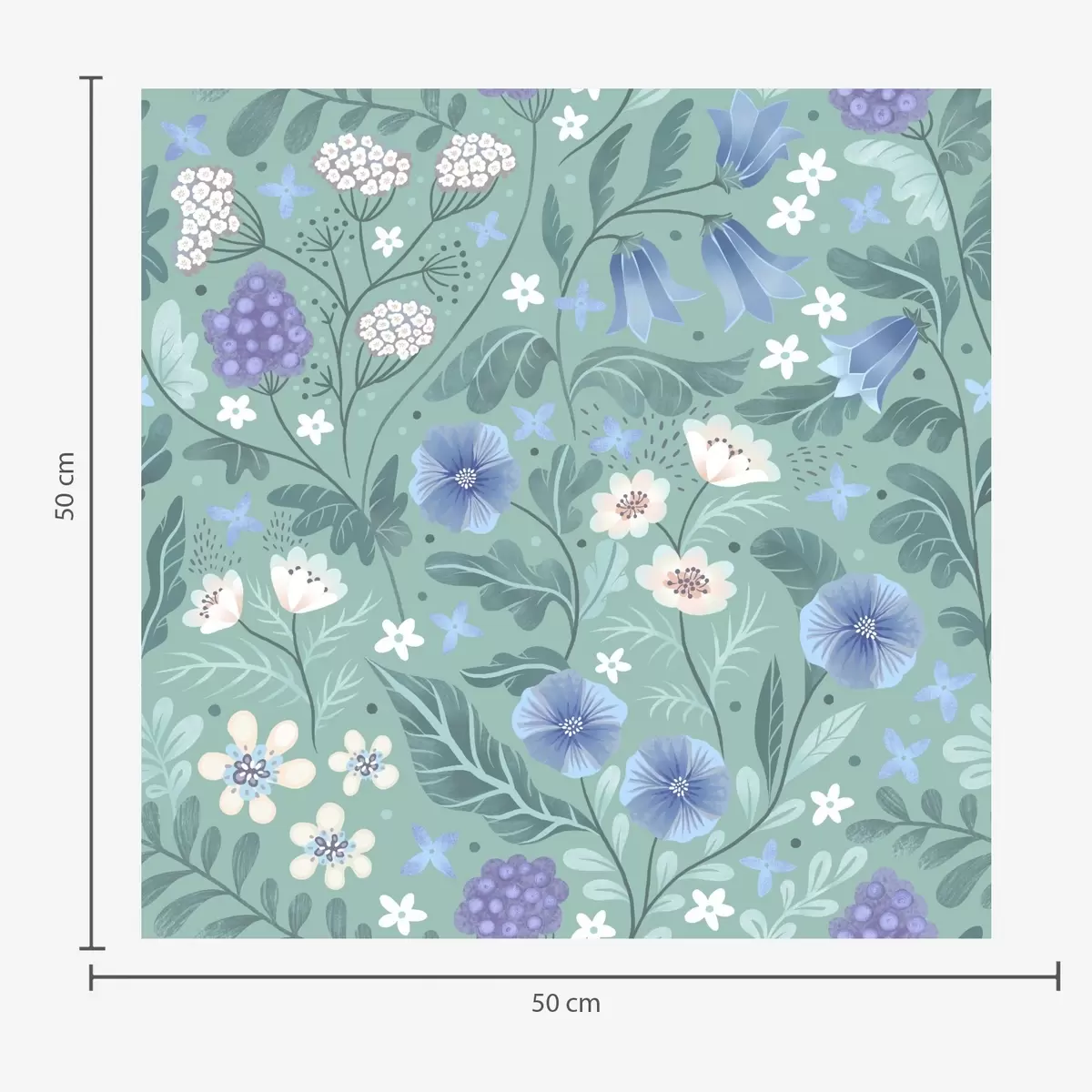 Papel pintado Flores silvestres y bayas sobre un suave fondo menta a00849
