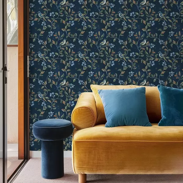 Papel pintado Tetas en ramas, fondo azul nocturno con chispas a00858