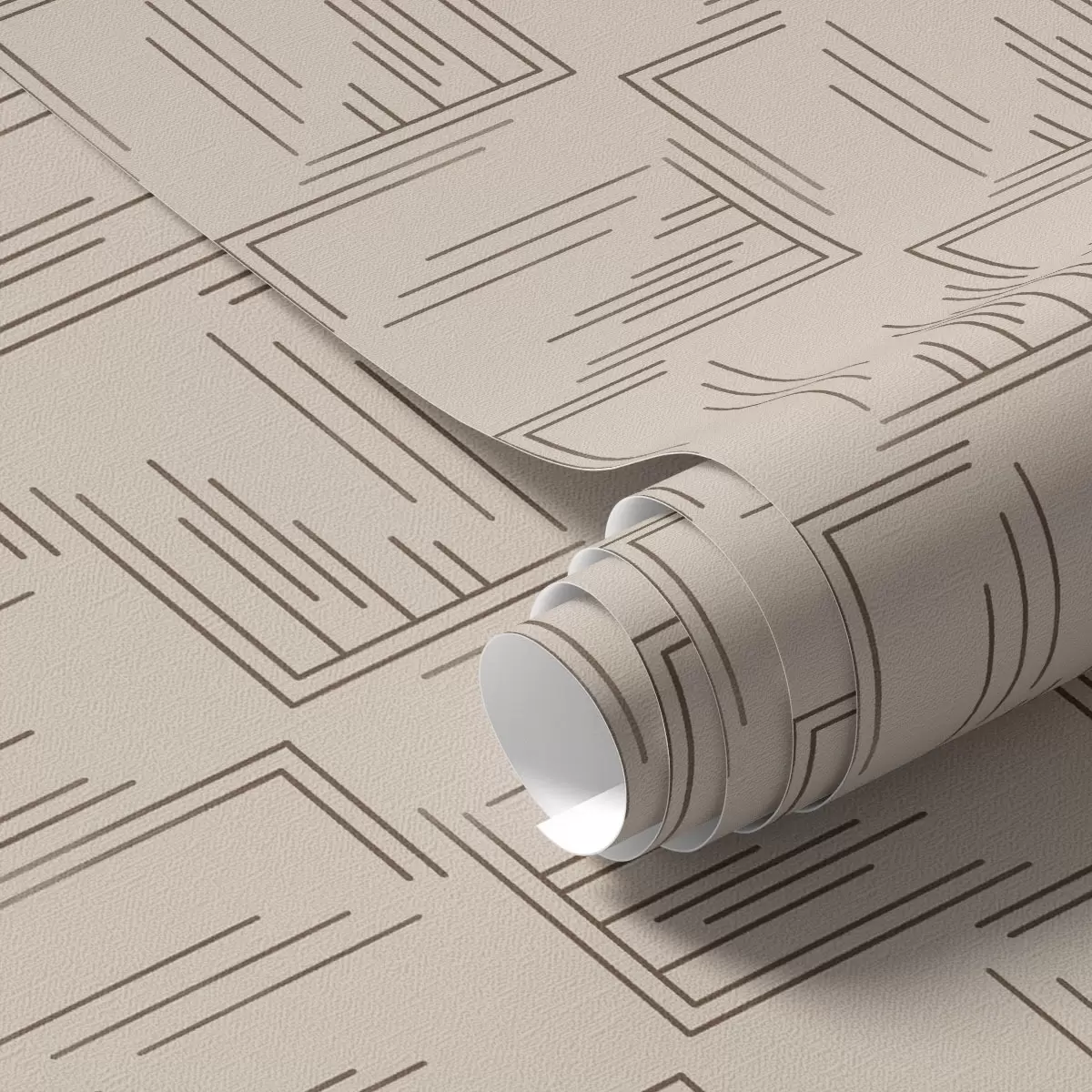 Papel pintado Grandes cuadrados de cacao con rellenos de líneas variadas, arena a00913