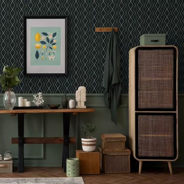 Papel pintado Fondo verde azulado oscuro con una rejilla de rombos repetitiva. a00975v1