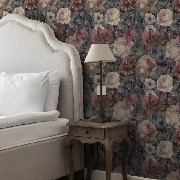 Papel pintado Ramo pictórico de flores grandes sobre fondo índigo intenso. a01021