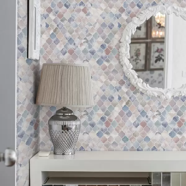 Papel pintado Mosaico en tonos pastel claros con suaves formas marroquíes. a01039v1