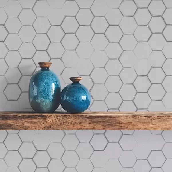 Papel pintado Cuadrícula hexagonal fina sobre un fondo texturizado gris claro. a01060