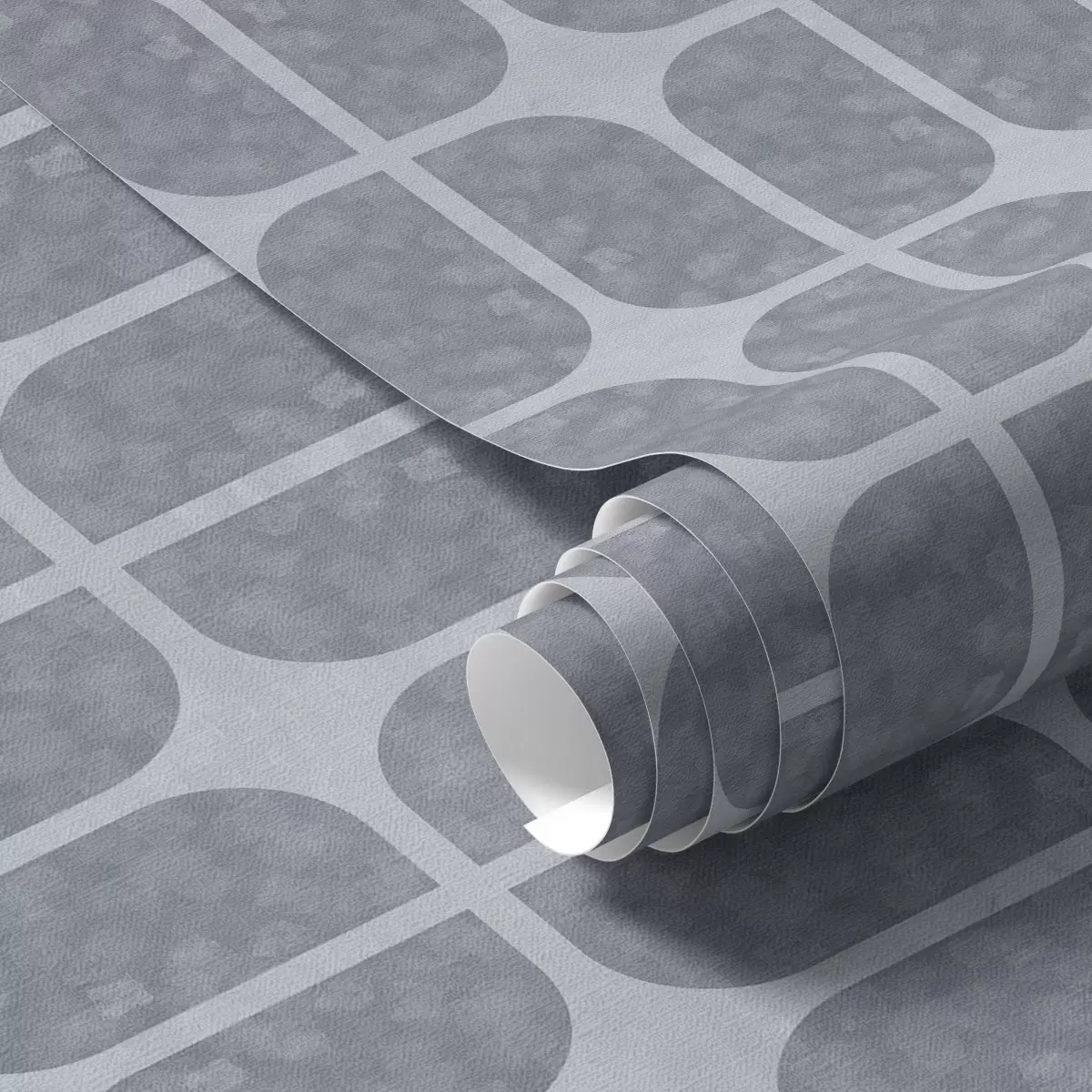 Papel pintado Mosaico gris con arcos rectangulares y textura suave. a01068
