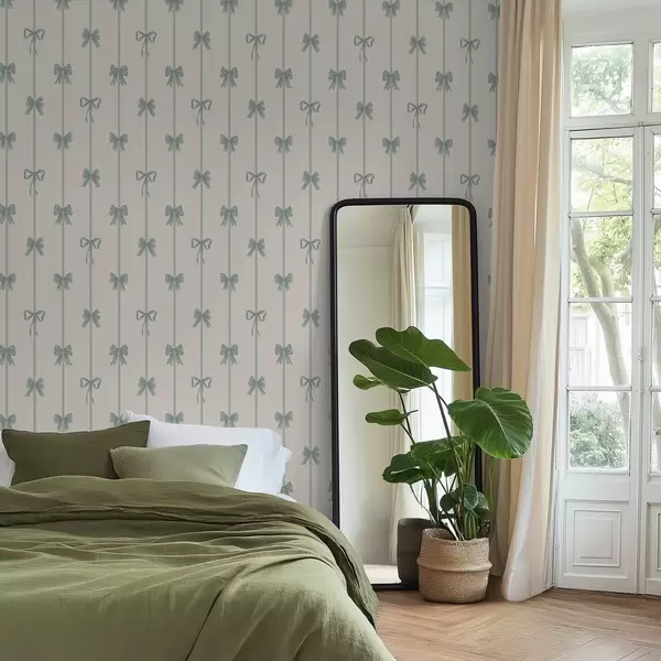 Papel pintado Lazos verdes con cintas sobre fondo beige a01074v1
