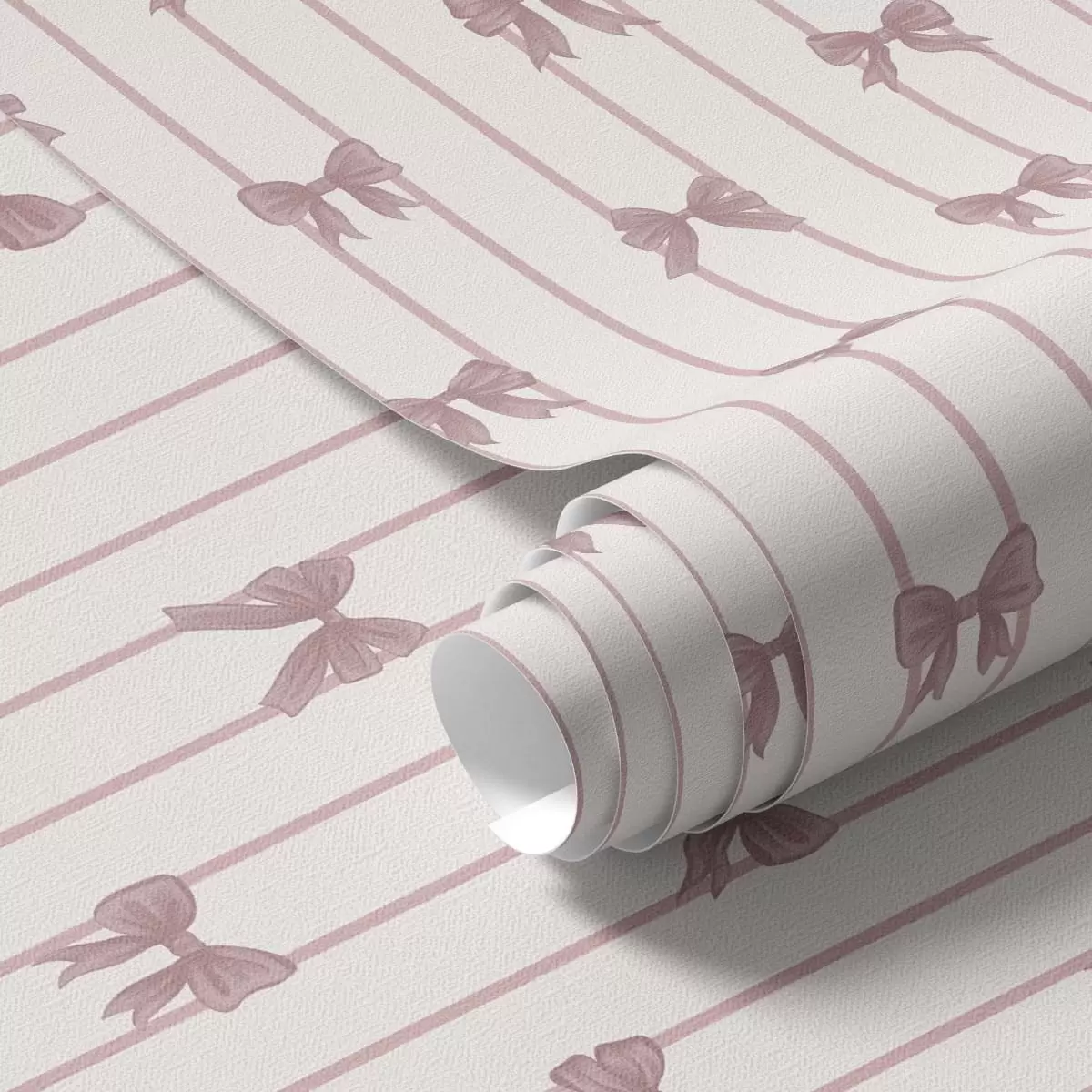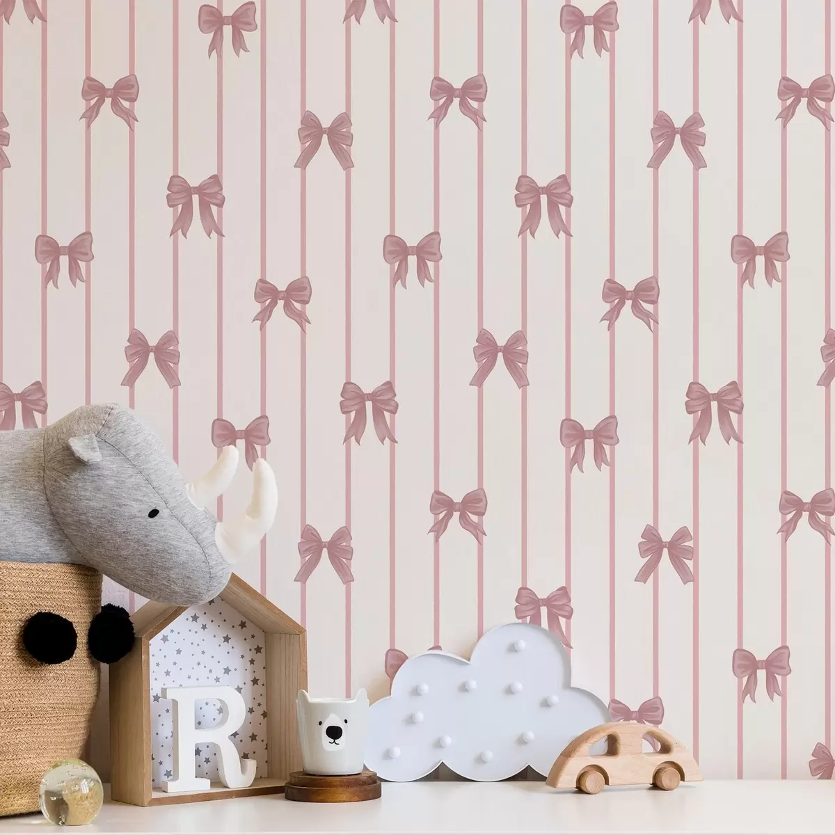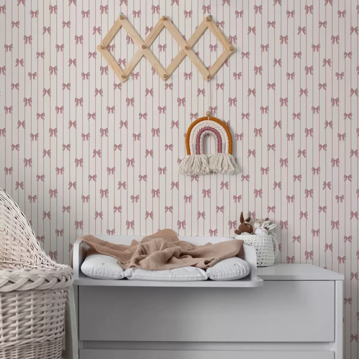 Papel pintado Pequeños lazos rosas en rayas verticales a01076