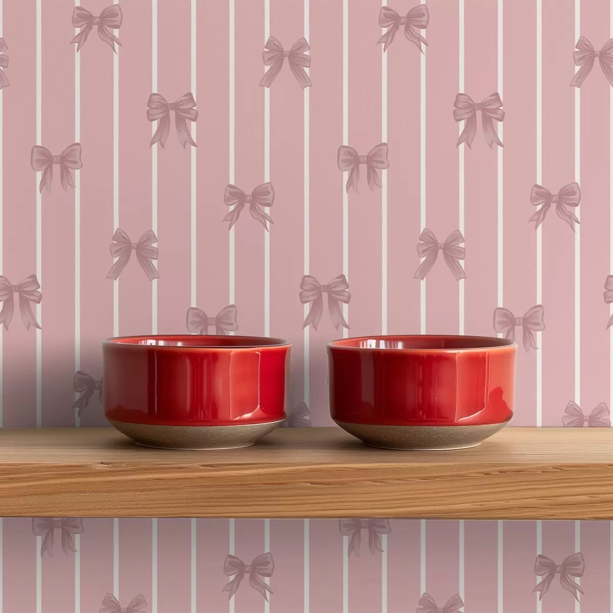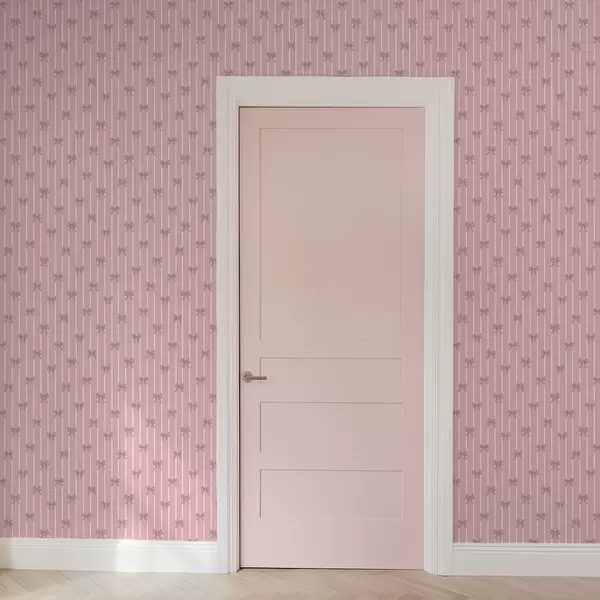 Papel pintado Pequeños lazos rosas sobre un fondo a rayas rosas a01076v1