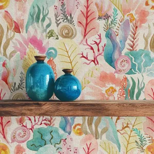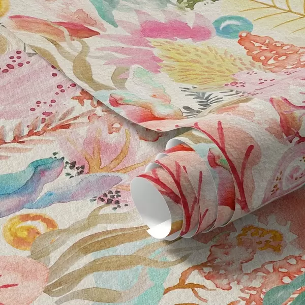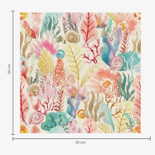 Papel pintado Acuarela de jardín submarino con corales y algas marinas a01083