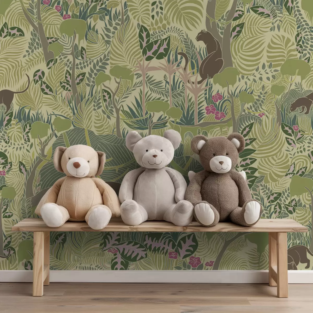 Papel pintado Escena forestal con animales y follaje denso a01108