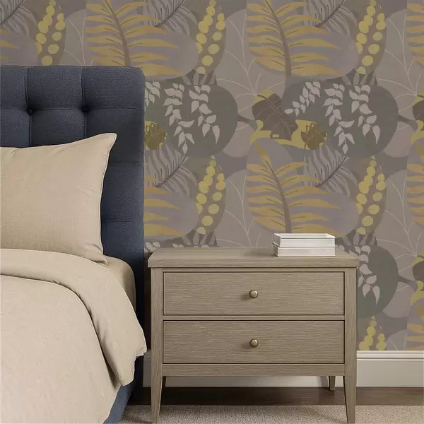 Papel pintado Hojas abstractas en tonos grises y amarillos a01112
