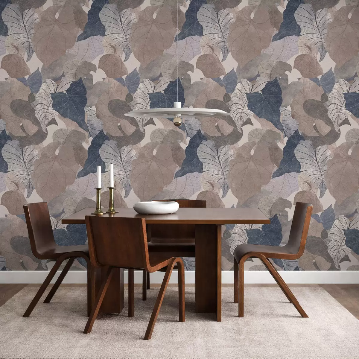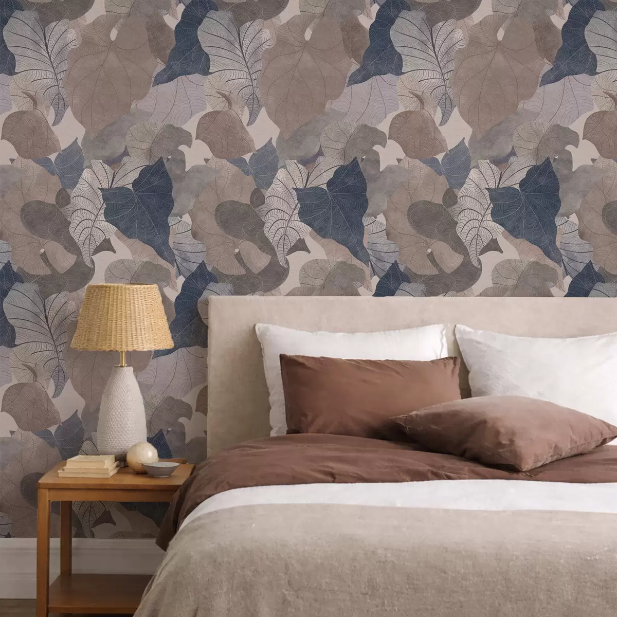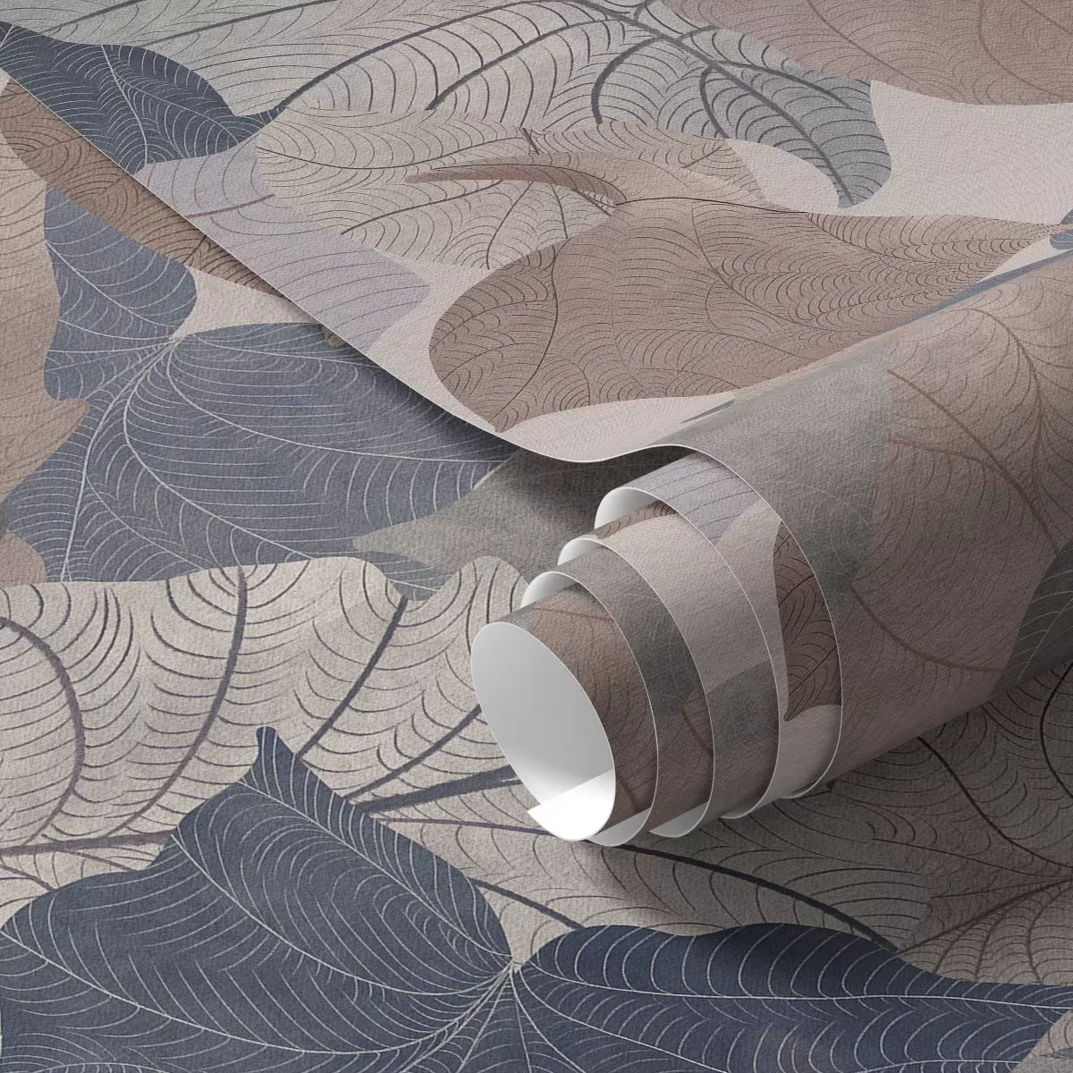 Papel pintado Grandes hojas estilizadas en tonos pastel. a01115