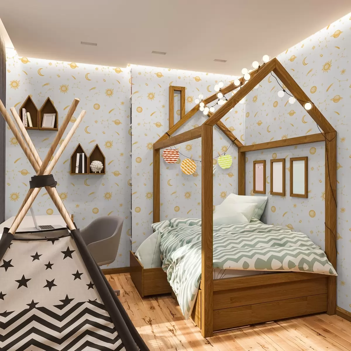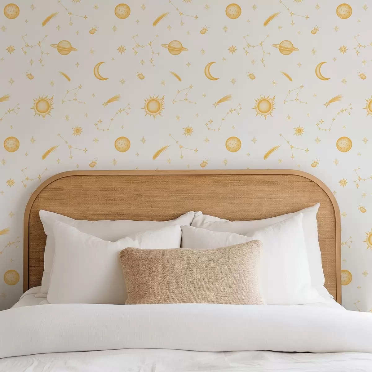 Papel pintado Cuerpos celestes y estrellas en estilo suave a01163