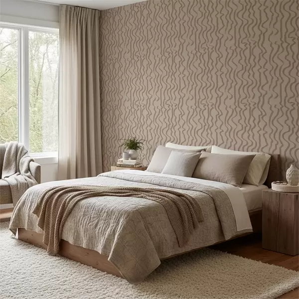 Papel pintado Líneas onduladas de color beige sobre fondo claro a01168v2
