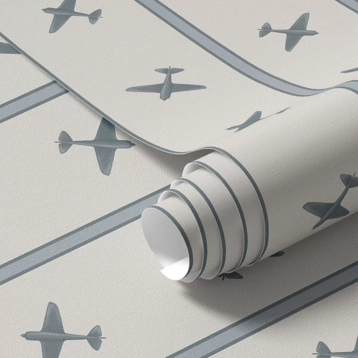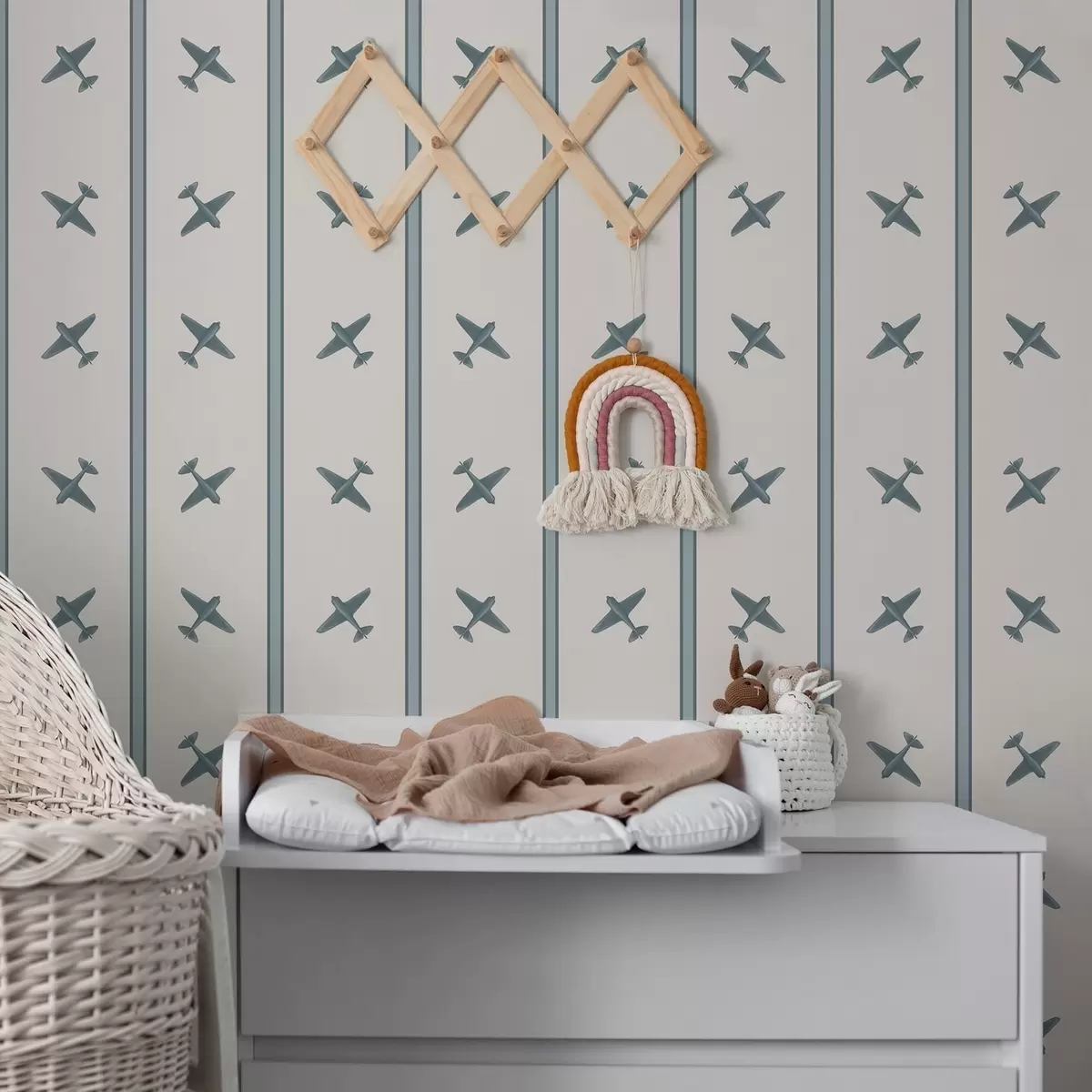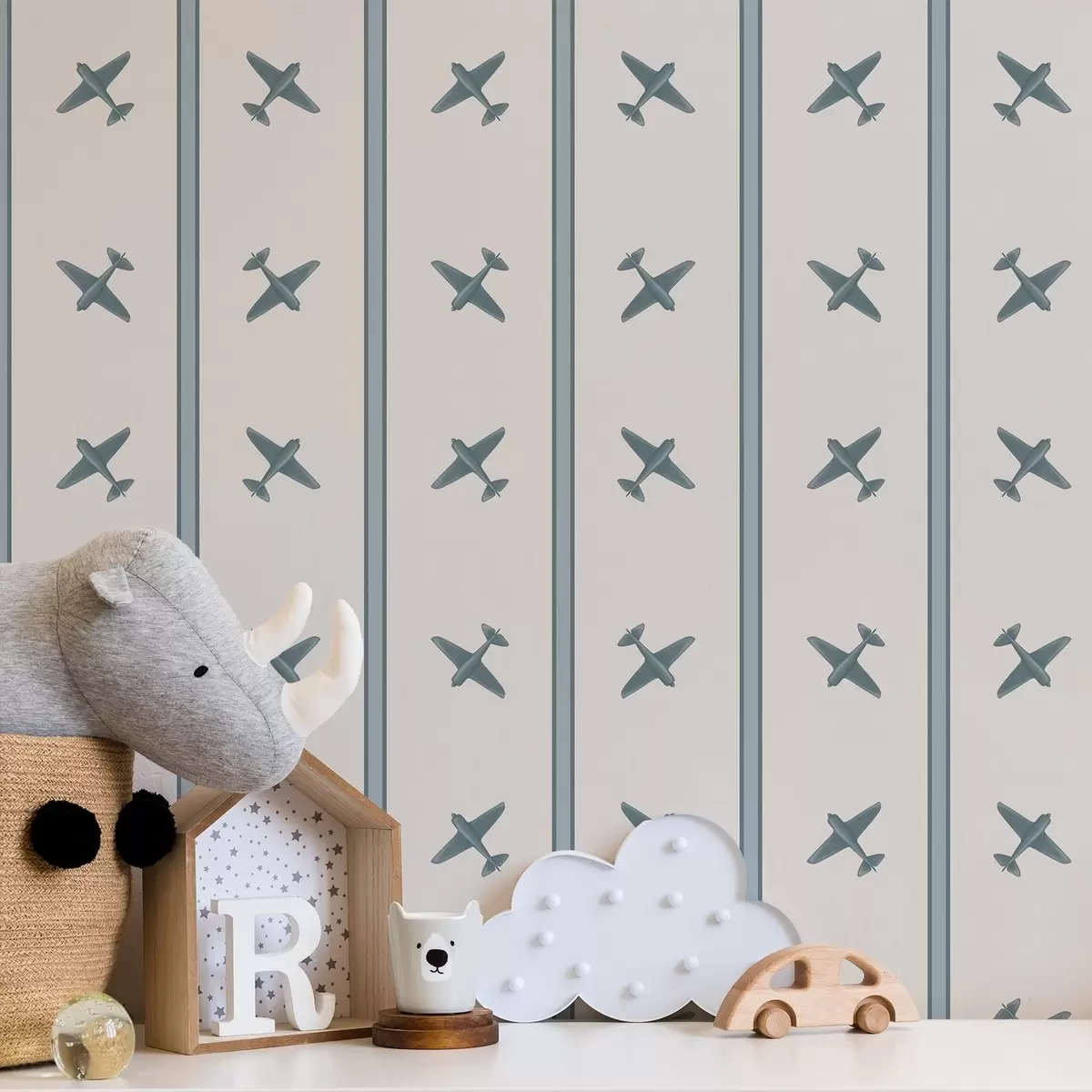 Papel pintado Aviones con un diseño a rayas azules a01170